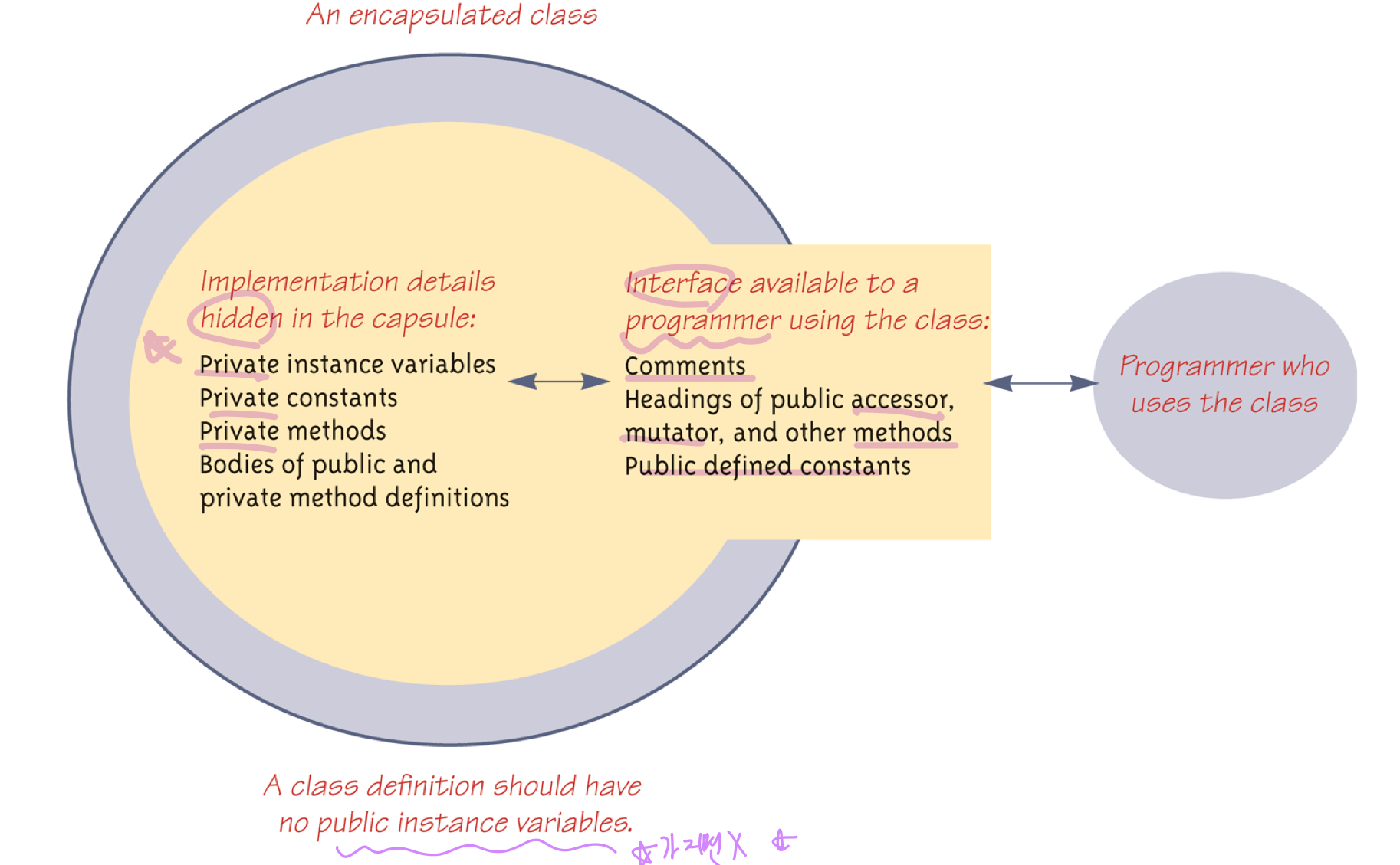 -> 자바에서는 세부 정보를 private으로 하여 숨김