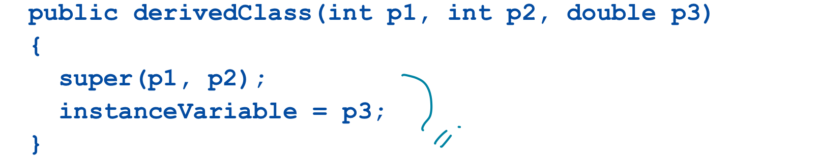 -> derived class에서 constructor에서는 위의 부모 클래스 값들은 이 super 이용해서 초기화 해주어야 함 !