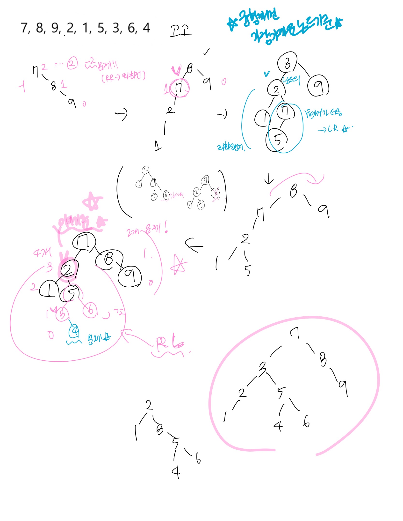 RL : 오른쪽으로치우쳤는데 오른쪽노드의 왼쪽서브트리가 더 무거울때 (1이라도) > 모양