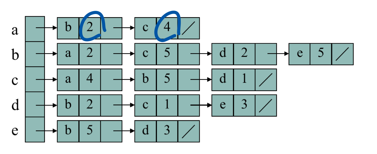 - 각 엣지에 가중치가 부여되는 것 (거리를 의미~~ 거리가 서로 다름~~ 노드사이의 거리)