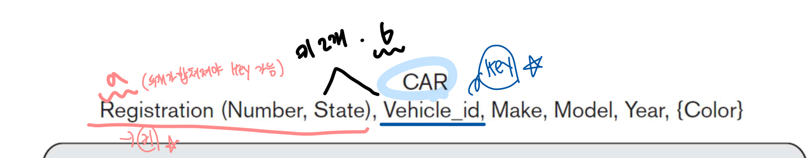 a. multiple att can be a key ! - 두개 이상의 att이 합쳐져서 key의 역할을 할 수 있다 (두개가 합쳐져야만 키가 됨)